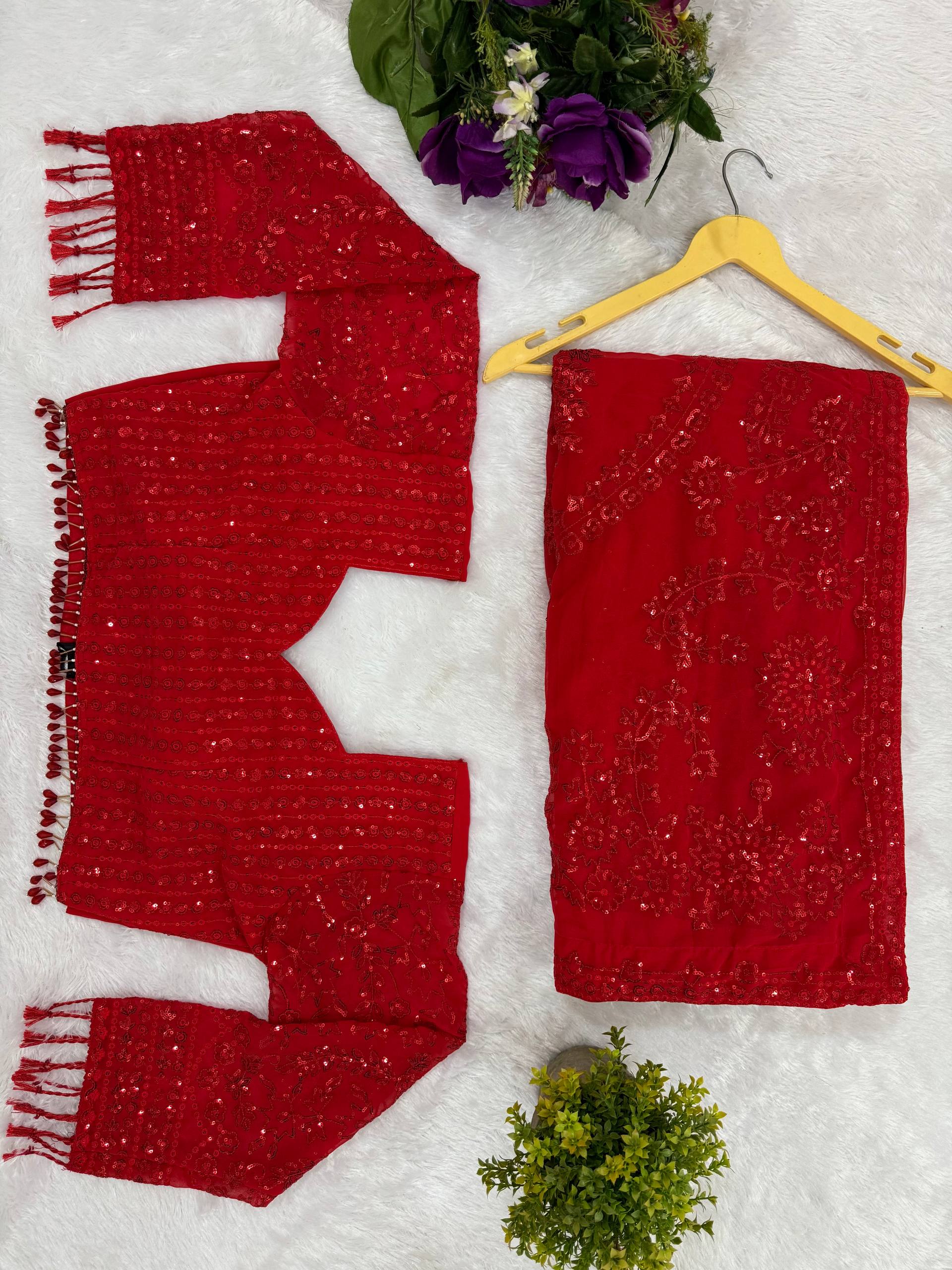 Premium Faux Georgette Embroidered Saree with Fancy Lace & Stitched Blouse
